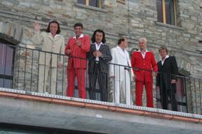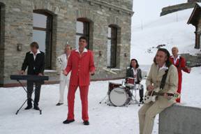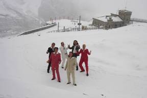 DIE PALDAUER Auf dem ca. 3100 Meter hohen Gornergrat oberhalb von Zermatt hatten es die Paldauer am 31.05. nicht ganz leicht. Bei minus 12 Grad und Schneesturm kamen die Musiker mit dem Produktionsteam gegen 10:00 Uhr oben an. Zusammen mit ca. 600 Japanern standen sie zunächst einmal mit ihren Instrumenten am Bahnsteig und wurden eingeschneit. Es brauchte viel Geduld und Einfallsreichtum um den geplanten Dreh über die Bühne zu bekommen.